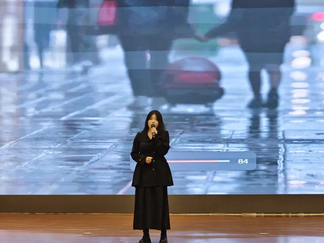 比赛在雷鸣般的掌声中正式拉开帷幕。本届决赛分为上下半场进行,共有十七位选手进行了精彩的演出,战况激烈,精彩纷呈。王佳、王文瑜同学的《开始懂了》让我们懂得了原来放手也是一种勇气,遗憾也是一种收获。颜蜻蔓同学用温柔的声音带来了《同手同脚》,诠释了弟弟到来为她生命中增添了独一份的柔情。李子昂同学《想你的夜》藏着最真挚的惦念与期盼,每一句歌词都戳中内心柔软。 张雅祯同学温柔而有力量的歌声,诠释《漂洋过海来看你》中这份跨越山海的赤诚与执念。中场小游戏环节更是让整个会场的气氛沸腾到了极点。
