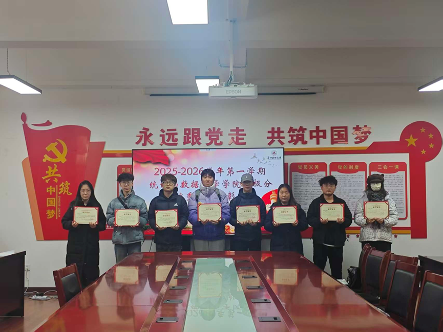 2025年11月27日下午14:30,统计与数据科学学院党支部于致远楼四号会议室召开积极分子优秀学员表彰大会,旨在激励全体积极分子向先进看齐,进一步坚定理想信念,提升思想觉悟与实践能力。此次评选经严格审核与综合评定,最终确定学生党支部杨紫玉等8名学员荣获 “优秀学员” 称号。